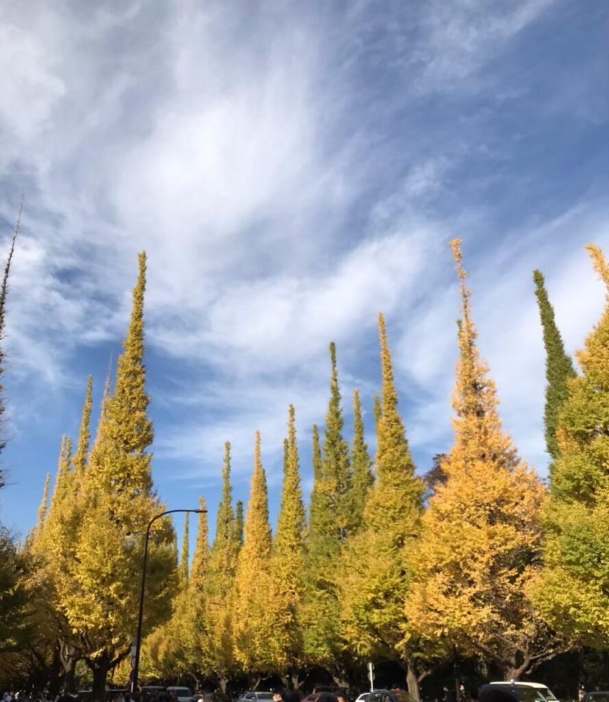 イチョウ:黄金色に輝く並木が印象的。落ち葉の絨毯も人気ですね。