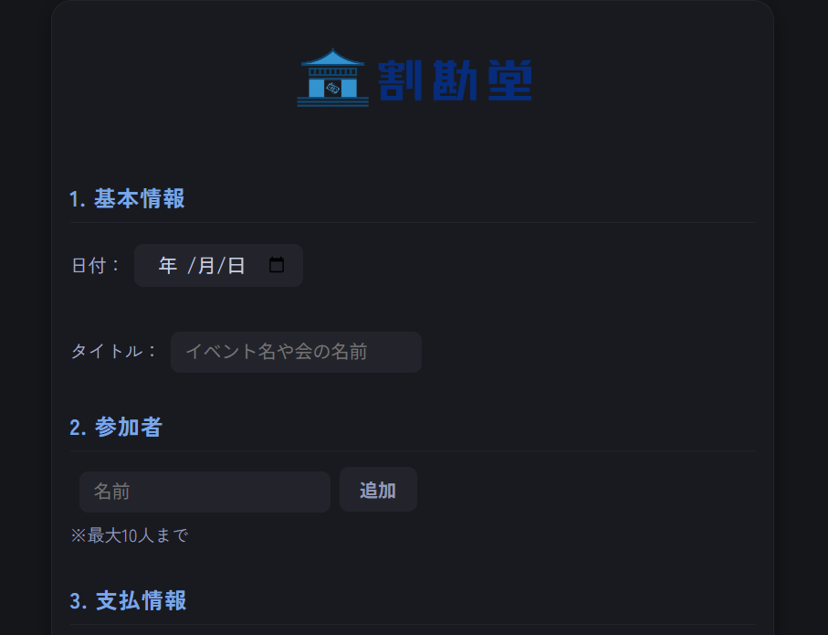 - 合計金額・一人あたり金額・精算方法を分かりやすく表示