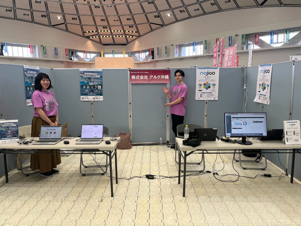 私たちアルクの出展内容は、サービスの一環であるプログラミング教室とAIドラレコ/デジタコを利用した安全運行管理支援サービスnojicoを出展しました。